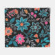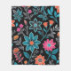Colourful Linoprint Floral Pattern Fleece Blanket