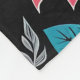 This seamless pattern features a variety of colourful flowers and leaves on a dark background. The flowers are in a variety of colours, including red, orange, yellow, pink, purple, and blue. The leaves are blue and grey.