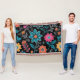 Colourful Linoprint Floral Pattern Throw Blanket