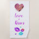 Let them know you love them with this fun, flirty, sweet, heart, and lip print design with the words love & kisses in pink, purple, blue, green and gold colours. The design looks great on a black or white background. Makes a fun gift for Valentine's Day, Wedding or Anniversary.