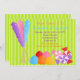 Start your celebration off with this adorable and colourful invitation. This is perfect for that sweet girl in your life! it doesn't matter if she's turning 3 or 13 this is a great theme. This invite is set on a bright lime green striped background. It has 3 rock candies together in a group: purple, pink and blue. Then there's a group of different coloured gumdrops from blue to red to orange. Next to them are 3 colourful candies in wrappers. The information on this invite is in four different colours bright & bold like the candies. Check out the many other products & colours in this line. ©JW Illustrations