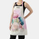 An apron with a delightful image. 3 colourful macarons, pink, green and blue with a fancy rose floral bouquet and a splash of pink watercolor. Delicious and stylish too! Light yellow background. Personalise with a name.