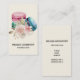 Business cards with a delightful image. 3 colourful macarons, pink, green and blue with a fancy rose floral bouquet. Delicious and stylish too!