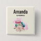 Button with a delightful image. 3 colourful macarons, pink, green and blue with a fancy rose floral bouquet and a splash of pink watercolor. Delicious and stylish too! Light yellow background.Personalise with a name and profession / title.
