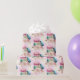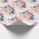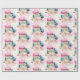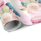 Wrapping paper patterned with a delightful image. 3 colourful macarons, pink, green and blue with a fancy rose floral bouquet and a splash of pink watercolor behind. Delicious and stylish too!