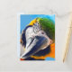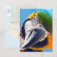 This close-up photograph of a colourful blue and yellow macaw is bright, cheery and sure to make you or whomever you send this postcard to smile.