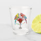 Colourful Macaw Parrots Drinking Red Wine Shot Glass