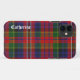 Great looking iPhone 5 case done in a traditional Scottish tartan plaid, in the colourful MacPherson family plaid. White old world style text running vertical up the left side is ready to personalise. Perfect way to protect your smart phone, and makes a great gift idea.