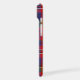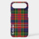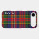 Great looking iPhone 7 case done in a traditional Scottish tartan plaid, in the colourful MacPherson family plaid. White old world style text running vertical up the left side is ready to personalise. Perfect way to protect your smart phone, and makes a great gift idea.
