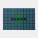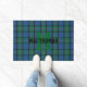 Add a splash of colour to your home, with this colourful blue, green, mauve, and black clan MacThomas tartan plaid door mat. A bold green one letter monogram, in the middle of the mat has black text running through it, and ready to personalise. Great gift idea.