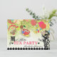 Colourful Mad Hatter Bridal Shower Invitation. So much fun and detail in this bridal shower invitation with a mad hatter tea party theme. Features a green background with a dot pattern and flowers gently overlayed on top of it. Various bright coloured flowers, vines, trees, branches and flourish elements grace the top of the page. Hanging around these flowers are tea cups and teapots to showcase the tea party theme. the mad hatter sits to the right of the page and looks on the tea cup madness hanging from the vines. All your party details are on the back. (madhatter image purchased from shutterstock).