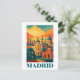 Celebrate the capital city of Spain with this colourful postcard of Madrid. Designed in a vibrant, retro-inspired vintage travel poster style, it highlights the city’s lively energy, historic landmarks, and Mediterranean charm. Featuring bold colours and timeless design, this piece captures the essence of Spain’s capital — from its grand boulevards to its cultural icons. Bring the vibrant spirit of Madrid, Spain into your home with this unique and colourful travel print.