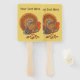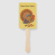 This program hand fan has a colourful male turnkey with feathers in red, orange, and browns with a big fanned tail standing in a pile of Autumn leaves on a deep yellow background on the front and back. Customise your text with the template on the front and back.