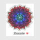 A beautiful hand drawn mandala design in dark rainbow colours of red, purple blue and turquoise.