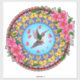 Delicate pink flowers with a hummingbird flying freely among pink petals over a blue background and within a charming colourful mandala. To some, sighting a hummingbird signals that challenging times are over and healing can begin. To others, these tiny fliers are an inspiring sign of hope and good luck. Hummingbirds also can have a spiritual significance and mean the spirit of a loved one is near. You can choose the size and use where your imagination takes you. Gifts, notebooks, cell phones, laptops and anything else you want to personalise and make it bright and cheerful.