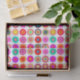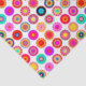A repeating pattern made up of 25 different colourful mandalas or kaleidoscope motifs