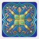 Pretty mediaeval pattern square sticker in gold, blue, green and copper.