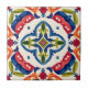 This ceramic tile design features a bold Mediterranean-inspired pattern in rich shades of red, blue, green, and orange. The intricate geometric and floral motifs bring a lively, hand-painted look that adds warmth and artistry to any wall or backsplash.
