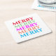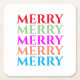 These fun and colourful holiday coasters will brighten up any holiday celebration. The design features the word "MERRY" five times in five different colours on a white background. A great way to bring a cheerful tone to your holiday party. Copyright Kathy Henis