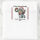 This cheerful sticker features a playful racoon embellished with a holiday wreath, perfect for adorning wrapped gifts during the Christmas season. Displaying a warm message, it adds a touch of fun and festivity to holiday celebrations.