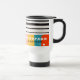 Colourful Mid Century Abstract Personalised Name Travel Mug features a colourful stripe pattern with your personalised name in simple black and white script on an abstract background. Personalise by editing the text in the text boxes provided. Perfect gift for birthday, Christmas, Mother's Day, sister, cousins, best friends and more. Designed by ©Evco Studio www.zazzle.com/store/evcostudio