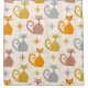 Bring retro charm to your bathroom with this mid-century modern shower curtain featuring a colourful atomic cats pattern in orange, grey, yellow, and brown.