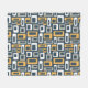 Seamless geometric Mid Century inspirational pattern with colourful (yellow, grey, white, mustard colour) squares decoration on dark blue background for everybody who likes simple geometric Mid Century designs.