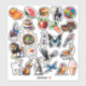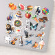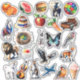 Variety watercolor vinyl stickers. Kiss-Cut, ready to use. Bright colourful sticker designs with animals, vegetables, food, instruments, planes, cars and other objects. Great for kids, crafting, scrapbooking, and junk journalling.