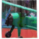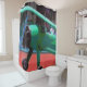The colourful artwork on this Shower Curtain is an original photograph by ZoeSPEAK of a model aeroplane. The plane is sea foam green, with a cornflower blue propeller on a black mount, and black tires. There is an aqua blue band at the edge of a salmon pink floor. The plane's wing cuts a diagonal line across the top of the photo, against a warm dark grey background. Little kids and big kids who love to fly will love this model aeroplane design.