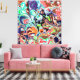Orange, blue, red, green, black, teal, turquoise colourful burst of colours art.