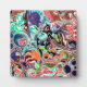 Orange, blue, red, green, black, teal, turquoise colourful burst of colours art.