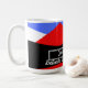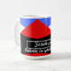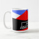 Minimalist Modern design with colourful abstract and aestheitc art in Blue blue red black and white decorated on a geometric triangles pattern for a stylish and elegant look on a customisable Coffee mug which is easely editable so you can write your name and favourite inspirational quote and motivational sayings to help you Start off well your day with a nice coffee and motivational words for a good productive day