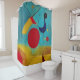 This whimsical abstract graphic features the colours red, yellow and shades of blue.