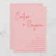 Set the tone for your wedding with this beautiful modern save the date card with handwritten script in pink and red.