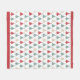 This Holiday theme fleece blanket features a colourful pattern of red, green, and gold modern design Christmas trees. The images are placed on a white background, with a matching red border at top and bottom. Festive! Pattern design credit to https://www.etsy.com/shop/ephrazydesign.