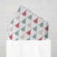 This colourful Holiday tissue paper features a fun pattern of red, green, and gold modern geometric design Christmas trees. The images are placed on a white background.