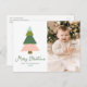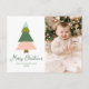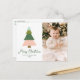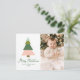 Modern photo Christmas postcard featuring an illustration of a Christmas tree in shades of green and blush pink. "Merry Christmas" is displayed in a whimsical green script with your name and year shown below. Personalise the postcard by adding your favourite vertical photo. The postcard reverses to display your return address and personal message.