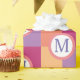 This stylish custom wrapping paper features a vibrant, colourful, modern design. Each corner features a different colour, which together resembles a summer sunset. Pink, coral, lavender, and yellow frame a sample monogram initial in the centre. You can personalise the gift wrap to include your own custom initial or other text.