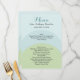Stylish wedding reception menu, done in rounded bands of aquamarine, aqua and pale green. Personalise the dark grey text for your wedding reception.