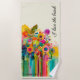 Colourful Modern Floral Design | Do you love the beach? Let the world know with this pretty floral beach towel. The bright and cheerful colours (electric blue, hot pink, lime green and more) are eye-catching and they're sure to make you smile. The "I Love the Beach" text is fully editable so you can change it or delete or leave it as is to suite your needs. The towel can be personalised in the bottom left corner with a name.