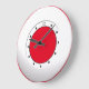 A shiny and metallic looking wall clock, with modern digits on white ring showing all hours but 3, 6, 9 and 12 as black dots. It gives you the time, but you also get an opportunity to colour adjust it to match your existing interior.