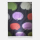 Dark Background: The dark backdrop, likely black or a very dark grey, provides strong contrast, allowing the bright colours of the polka dots to pop prominently.