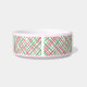 This modern design features a colourful green and pink striped pattern on a white background #dog #cat #pet #dogsupplies #petsupplies #bowls #home #feeding #pink #stripe #tartan #geometric #abstract #pattern #design #designer #stylish #chic #trendy
