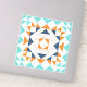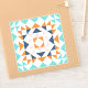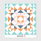 This fun design features a modern geometric barn quilt block in a fresh colour palette of cute retro style colours including turquoise, orange, navy blue, and blush pink.