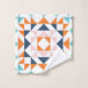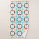 This stylish bath towel set features a modern geometric barn quilt block pattern in a fresh colour palette of cute retro style colours including turquoise, orange, navy blue, and blush pink. Great gift idea.