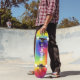 Colourful Modern Rainbow Tie Dye Swirl Custom Name Skateboard