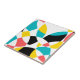 Cool, unique, trendy, urban abstract illustration pattern art made with circular geometric shapes in blue, pastel red, yellow and black colours. Playful, bold, vibrant, colourful and modern graphic design artwork.