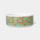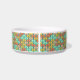 This is a heavy, durable bowl decorated with Tibbies of many colors, the perfect size for hungry/thirsty Tibs. The design is interesting and printing clear.