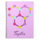 This colourful molecule model notebook, features a light purple background with a molecules formed of colourful atoms. With your name written underneath in fun purple font, personalise yours today!