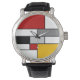 Abstract modern art with colourful (red, grey, black, yellow, white) rectangles in Mondrian style on white background for everybody who likes simple, modern geometric designs.